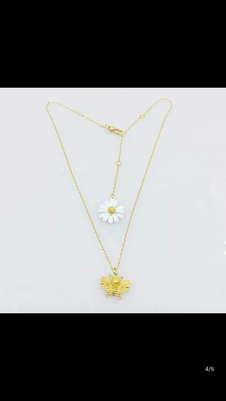 Вітаю на сторінці taobao_mania1. Строк доставки 10-12днів Кольє з ювелірної стали яка не темніє і емалі. Кольє регулюється по довжині. довжина ланцюжка 48см. Квітка 1.8 див. Бджола 1.6 см