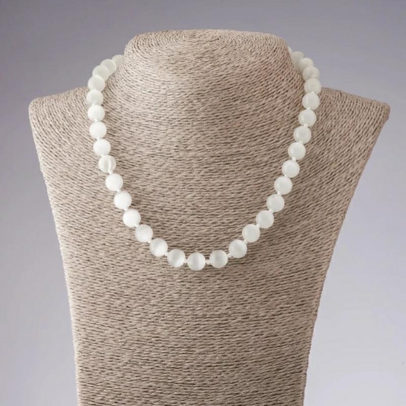 Бусы Кошачий глаз белый жемчужный d-10мм L-45см