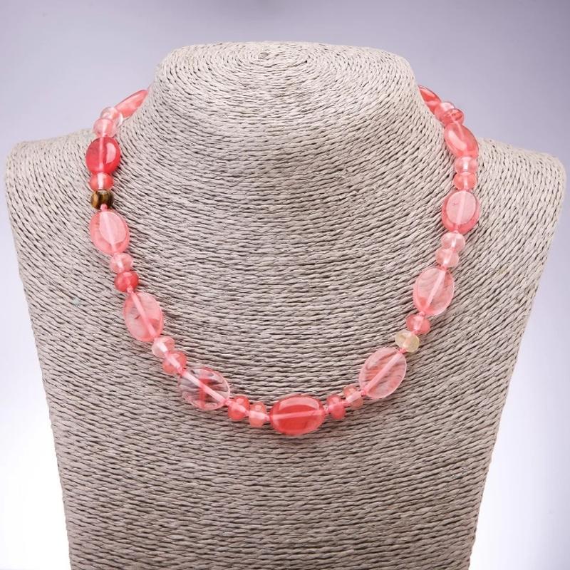 Намисто з натурального каменю Халцедон плоский овал d-8mm L-48, oval d-12 mm