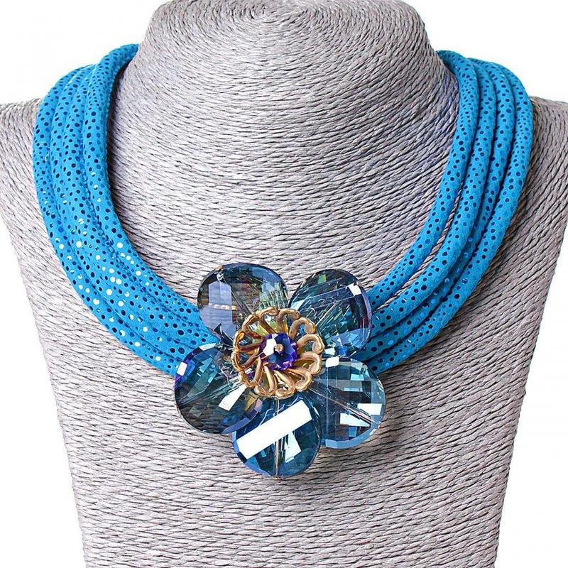 Синє намисто з квіткою, чеське скло, 50-55 см