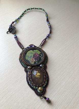 Намисто вишите бісером в ручну; Довжина самого кулона - 12 см; Довжина ланцюжка 41 см;