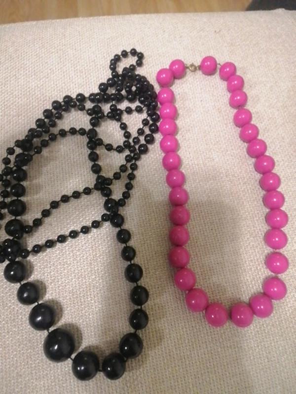 Намисто, дві штуки. Чорні довгі, малинові короткі.