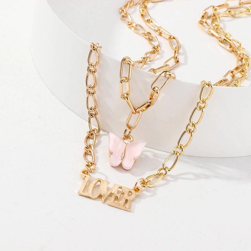 Подвійна ланцюг чокер з підвісками метелик love ланцюжок намисто