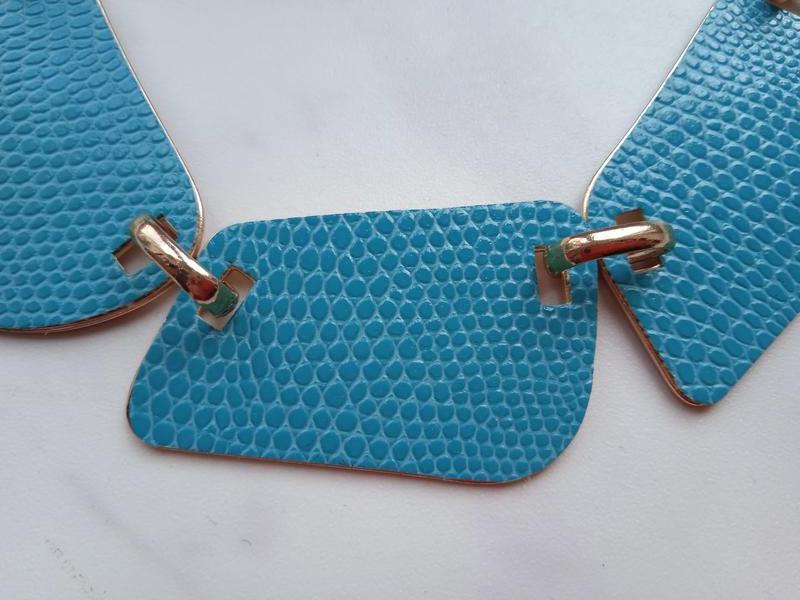 Симпатична оздоба на шию бірюзового кольору, жовтий метал. Колір як на останньому фото