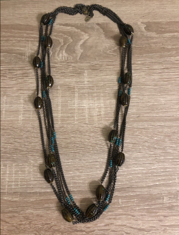 Красиве кольє бренду C&B (є маркування), складається з 5 ланцюжків з керамічними коричневими з блакитними вкрапленнями намистинами-«діжечками» з бірюзовими дрібними дерев'яними намистинами. Стримано і стильно. Нове. Довжина 84ссм. Оплата на карту Монобанк або Райффайзен, доставка НП або Justin, можливий наложений платіж з частковою передоплатою. Дякую, що зацікавилися моїм асортиментом. Підписуйтесь - великий вибір брендового одягу розмір S-M, ексклюзивної біжутерії, аксесуарів і косметики.