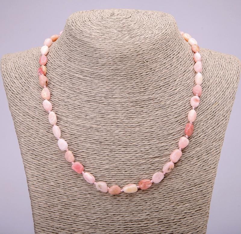 Намисто з натурального каменю Рожевий Опал галтовка d-7х12(+-)мм L-48см