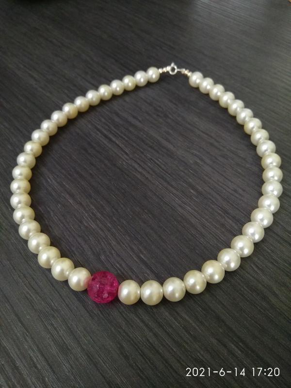 Чокер з натурального великого перлів з бусиною з рожевого кварцу, фурнітура з срібла 925 проби