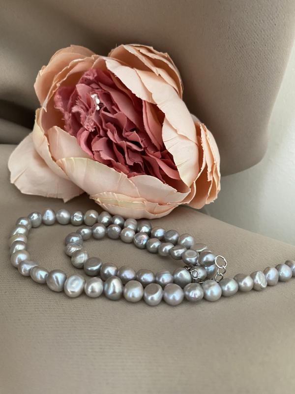 Ожерелье с натуральным пресноводным жемчугом. Тип камня: натуральный пресноводный барочный жемчуг Форма жемчуга: барокко Размер жемчуга: 7-8мм Длина: 40-45 см Материал металла:медная застёжка (напыление серебро)