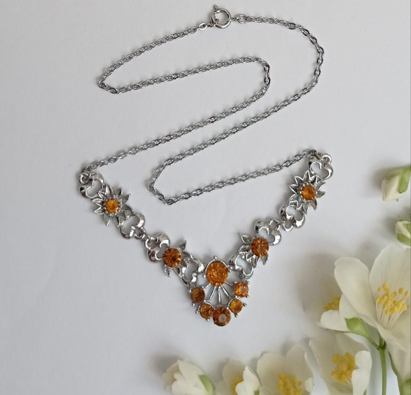 Кольє, австрійські кристали, основа в срібному тоні, європейський вінтаж
