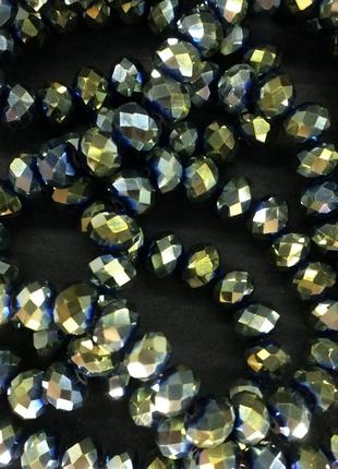 Бусины на нитке Стекло рондель d=8мм цвет зелено-синий металлик (~72 бусины на на нитке)