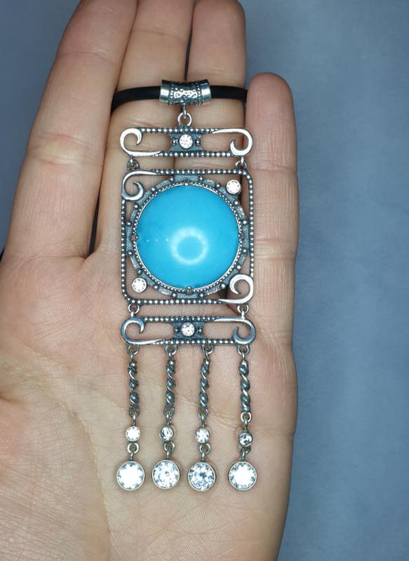 Вставки: бирюза имитация, кубический цирконий, каучук. Проба серебра 925°, клеймо Пробирной службы. Вес ― 29,5 грамма. Размер - 48,5 см. арт 8053