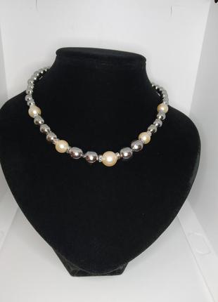 чокер на застежке пластиковые бусины вставочки из стеклянных колечек длина 41 см