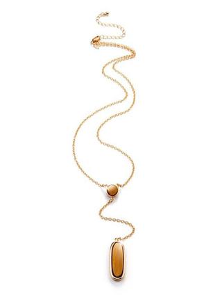 Колье двухстороннее.С одной стороны камень черного цвета, с другой светло-коричневого. Длинна цепочки 61+9 см Колье новое, запечатанное. Если нужны дополнительные фото - спрашивайте :}