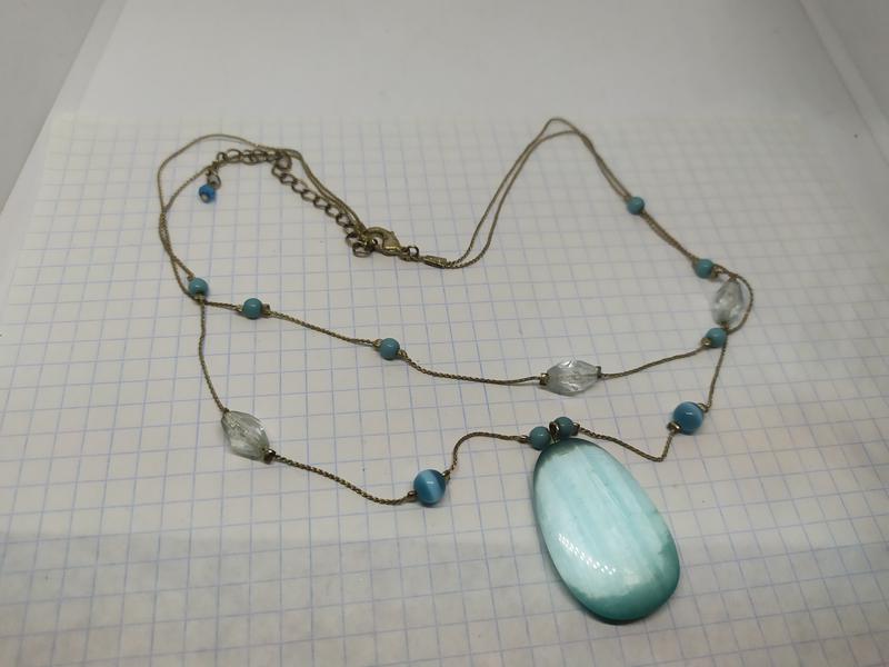 довжина 40 і 43см + ланцюжок бірюзові намистинки і кулон - скло