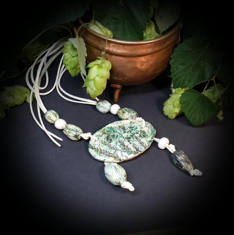 керамика ручной работы, шнур Декоративная часть 18 / 9 см. Полная длина 130 см. *** Украшения делаю я сама. Каждое из них создается только в одном экземпляре. По желанию можно заказать что - то в комплект. Смотрите другие мои объявления) Есть много украшений ручной работы и винтажных украшений!