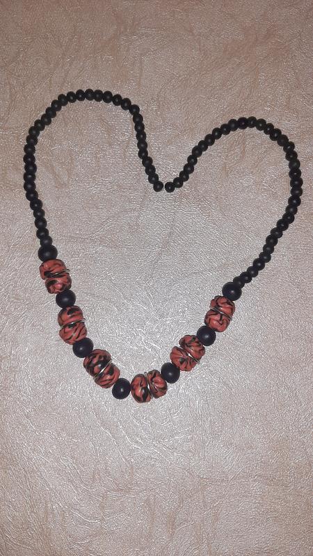 Намисто срср довжина 71.5 див. точно не знаю з якого матеріалу,думаю що з полімерної глини🍀