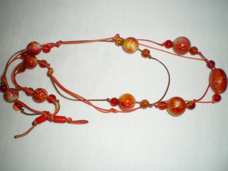 Намисто бохо з яскравих оранжево-червоних намистин, підійдуть до літнього та вечірнього вбрання.