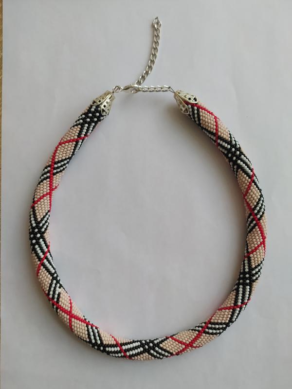 Красивенный жгут из бисера в стиле барбери. Оригинальное украшение ручной работы. Длина жгута без цепочки 46см, с цепочкой 56см. Цепочка позволяет регулировать необходимую длину.