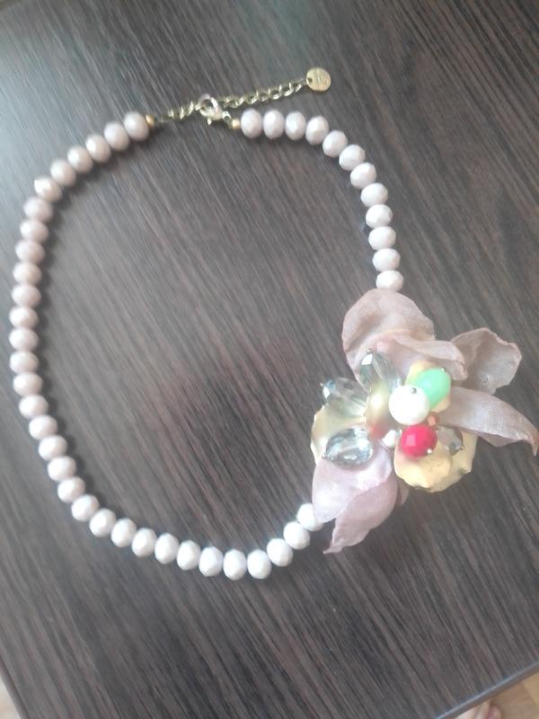 Дуже гарне і оригінальне кольє ніжно - фіолетового кольору з букетиком, стан ідеальний, виглядає дуже ефектно.Намистинки з легким перламутром.