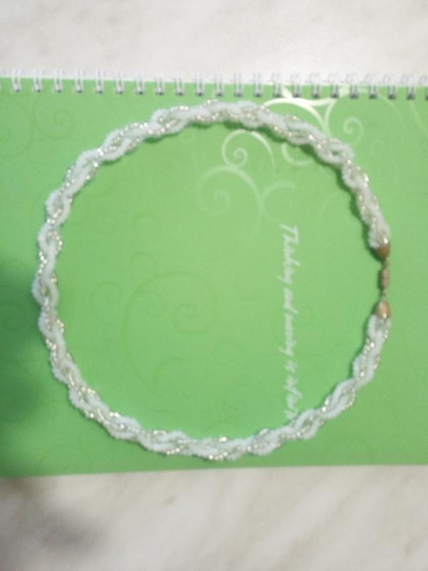 Очароватьные жіночі намиста ручної роботи і відмінної якості.Виготовлені з білого і сріблястого бісеру по техніці ланкового переплетення,мініатюрна вкручивающаяся застібка кольору самоварного золота ( довжина виробу 48 см і шириною приблизно 1 см і 2 мм ).Відмінно будуть поєднуватись з виробами з білого перлів,особливо в сріблі.Не дрібні і досить привабливі бусики.Додаткові фото за запитом.Відправляю: новою поштою та укрпоштою, після повної оплати на картку.Пишіть в лічку і телефонуйте ( с 11:00 до 22:00 ),в інший час я не відповідаю,на роботі.Цікавитеся.