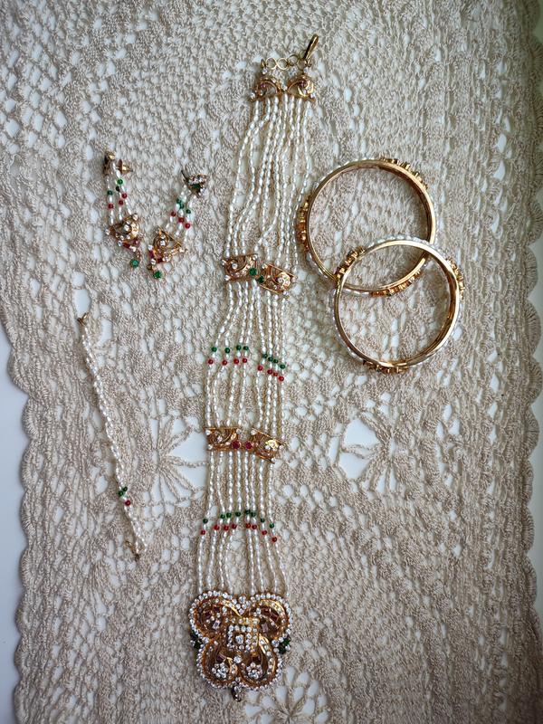 3 браслети, 2 сережок , намисто річкові перли, каміння, бісер