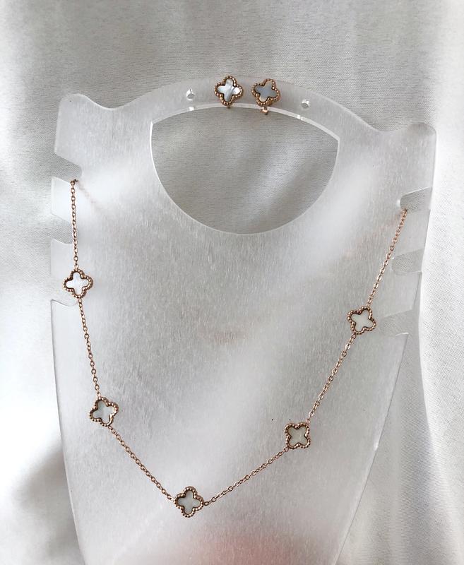 Набір клевер, конюшина, перламутр, кольє, цвяшки, пусети, гвоздики