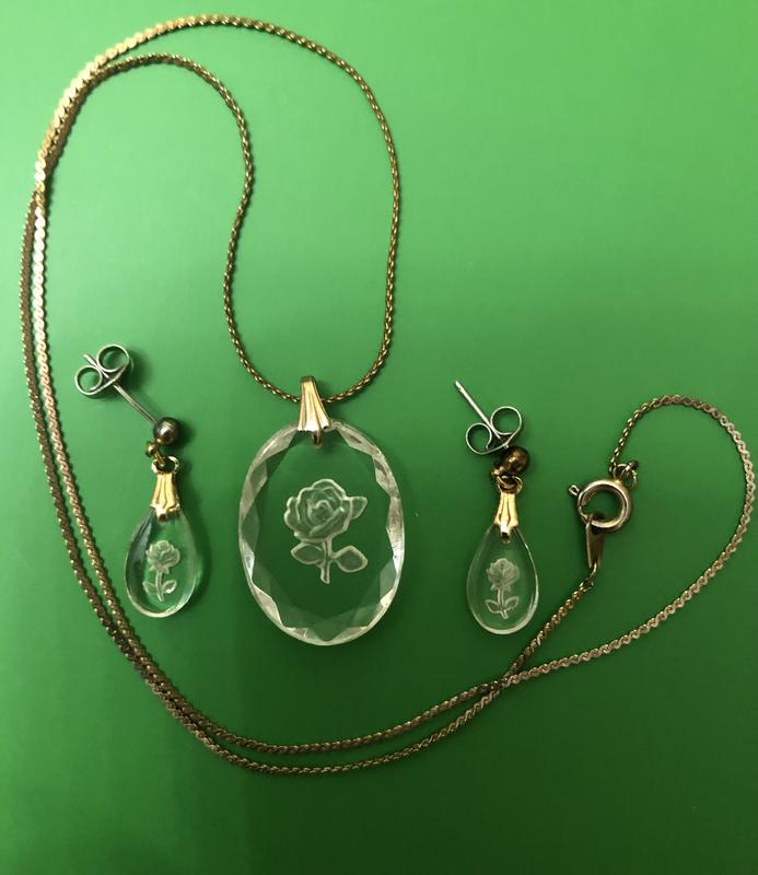 Чудовий комплект з прозорого скла, техніка інталії, невеликих розмірів