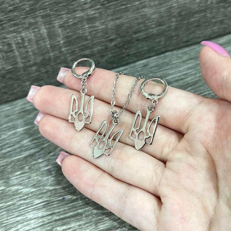 Патріотичний набір "герб україни тризуб - сережки та кольє чиста сталь" оригінальний подар...
