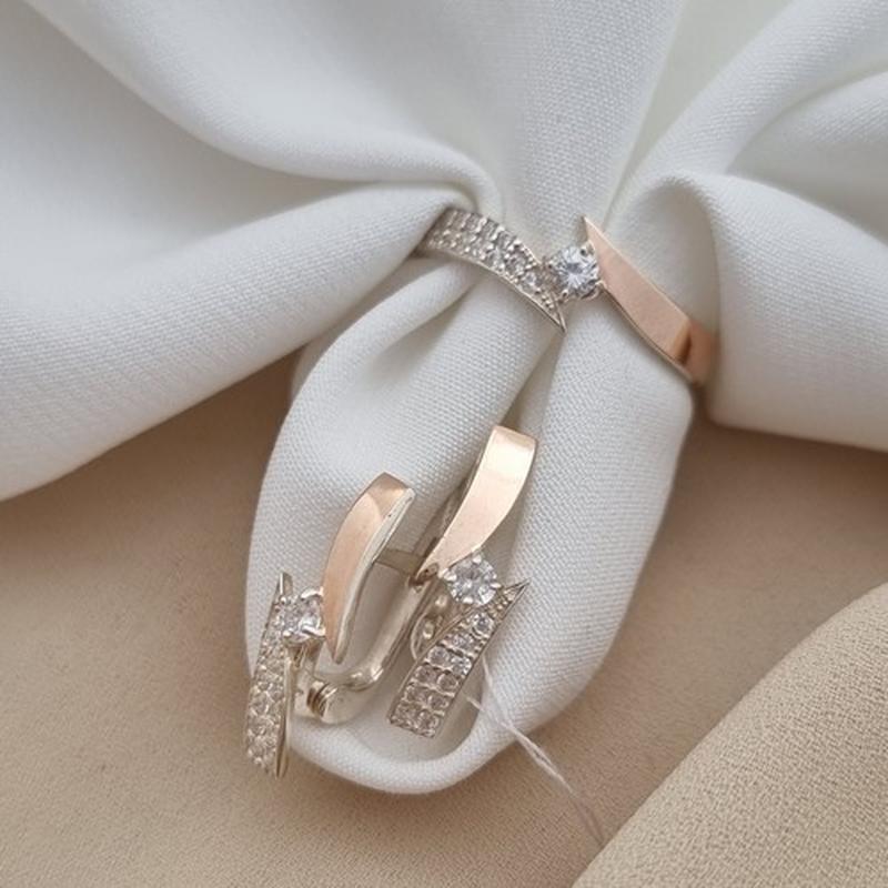 Срібний набір сережки та каблучка з золотом і цирконами Витончений срібний із золотими пластинами та цирконами гарнітур ювелірних прикрас, що складається з кільця та сережок, чудово доповнить ваш повсякденний чи урочистий образ. Його витончений класичний дизайн без сумніву приверне до себе увагу. Центральний невеликий круглий циркон красиво контрастує із золотою напайкою зверху та посилює блиск розсипу цирконів, що знаходяться під ним. На сонці та при штучному освітленні комплект прикрас зі срібла та золота сяятиме і переливатиметься завдяки граням цирконів. Срібні із золотом сережки дуже красиво виглядають на вушках, а англійський замок надійно їх утримує у мочках. Кільце в одному дизайні з сережки. Виготовлені кільце та сережки зі срібла 925 проби та із золота 375 проби. Догляд за таким комплектом ювелірних прикрас дуже простий - раз на місяць промивайте його в мильній воді та просушуйте рушником і він радуватиме вас дуже довго своїм блиском та сяйвом. Витончений срібний із золотом та цирконами комплект прикрас стане вашим коханим, його можна носити кожен або одягати на урочисті заходи.. А щоб було зручно зберігати ювелірний гарнітур і менше піддавати його механічним ушкодженням підберіть до нього коробочку футляр. Відповісти на додаткові питання щодо срібного гарнітура з цирконами та вибрати коробочку футляр допоможуть наші консультанти. Набір виконано зі срібла 925 проби, що засвідчено клеймом ювелірної палати України. Також ми співпрацюємо з оптовими покупцями та за системою дропшипінг. *********************