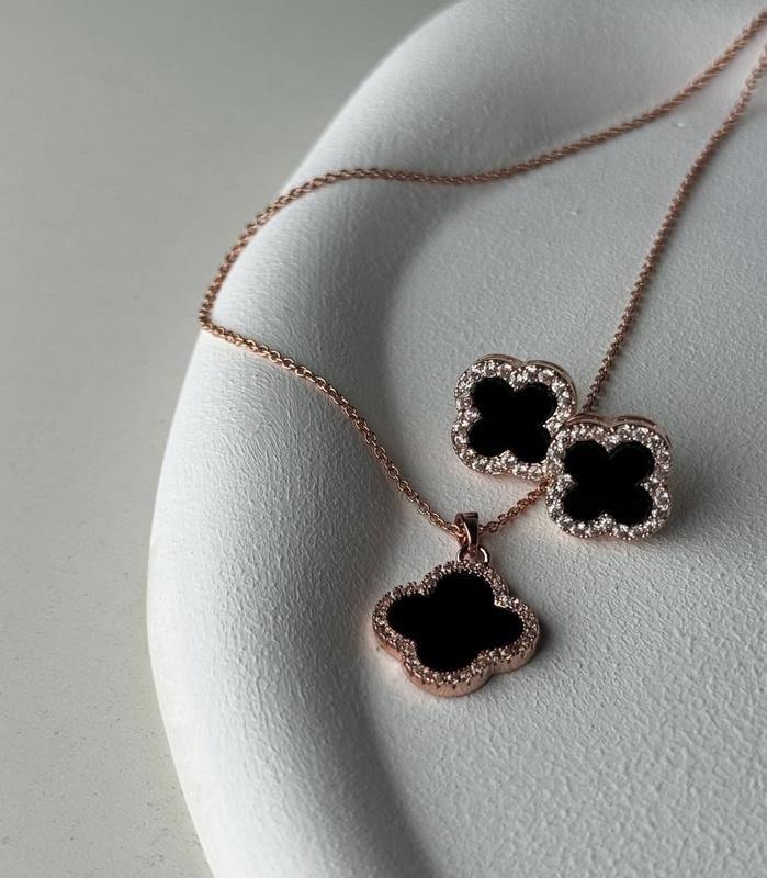 Набір підвіска і сережки конюшинки клевер медична сталь ювелірна сталь