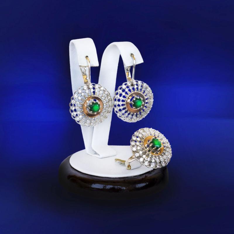Каблучка 6.25г Вставка смарагд ім. Розмір каменя 6*6мм Сережки 9.66г Вставка смарагд ім.