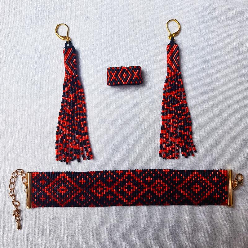 "Червоне Сяйво" - комплект з українською душею. Поєднання червоного блиску та матового чорного. Неймовірне мерехтіння, люксова якість скляного бісеру. За основу взятий український народний орнамент. Фурнітура золотистого кольору. ▫️ Виготовляю прикраси з бісеру та намистин під замовлення! СТВОРЮЮЧИ - МРІЮ 💫