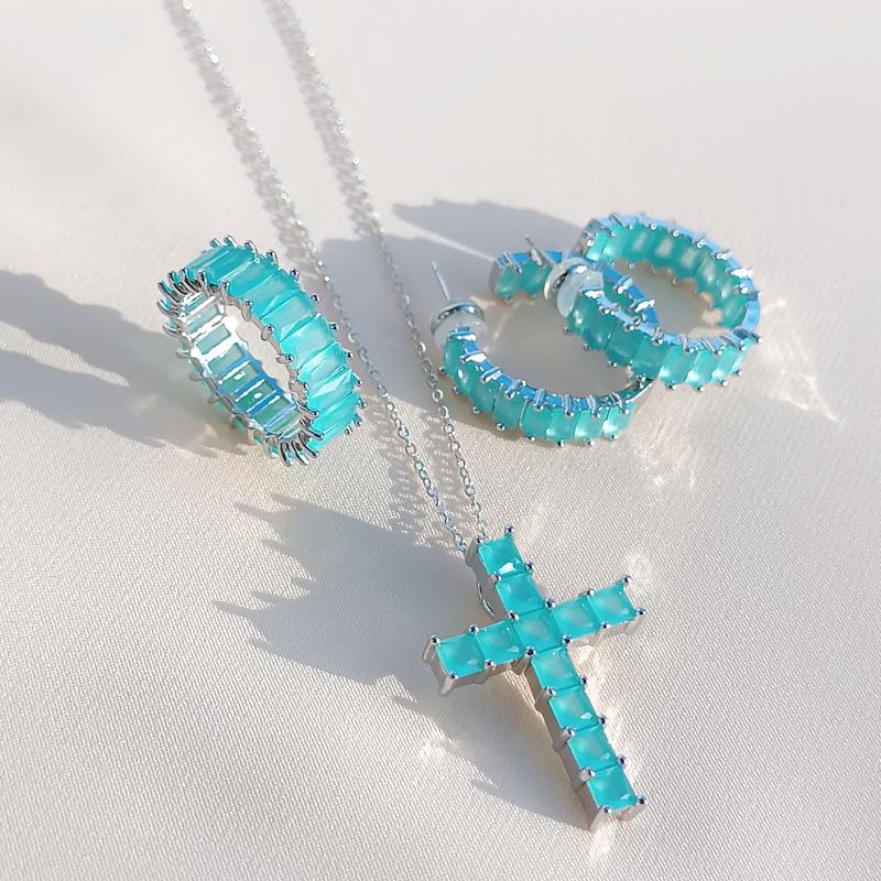 💎 Ювелірна сталь, Кубічний Цирконій 💎 🔹 Хрестик 3см. 🔹 Ланцюжок 40+5см. 🔹 Колечко 16, 17, 18 рр. Ширина 0,6см. 🔹 Сережки 2,5см. Ширина 0,5см.