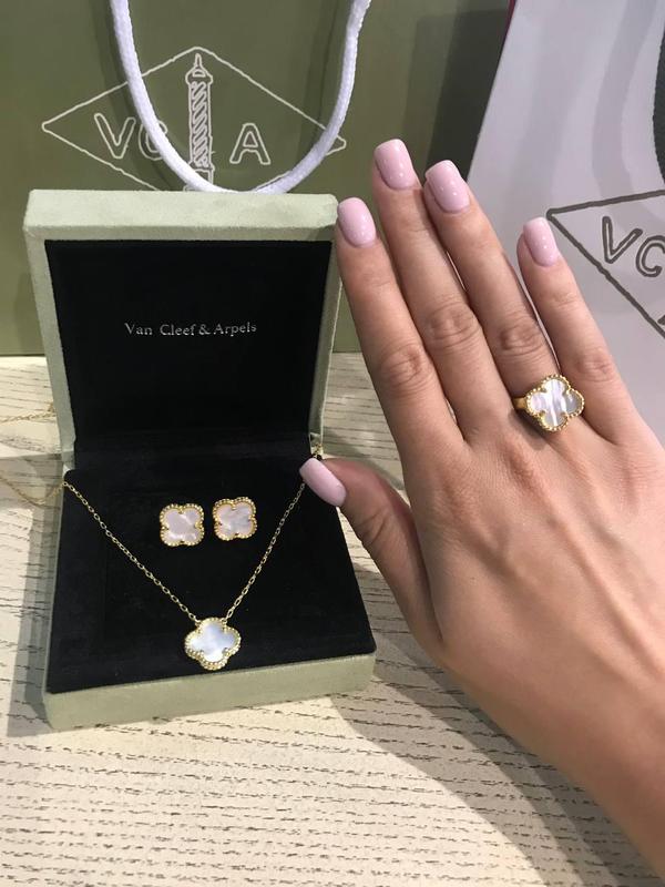 Набір vancleef/ ванкліф перламутровий у позолоті: підвіска з однією конюшиною, одинарне кі...