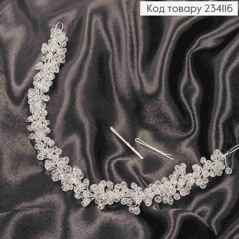 Гілочка у волосся сріблястого кольору, з стеклярусом весільна прикраса