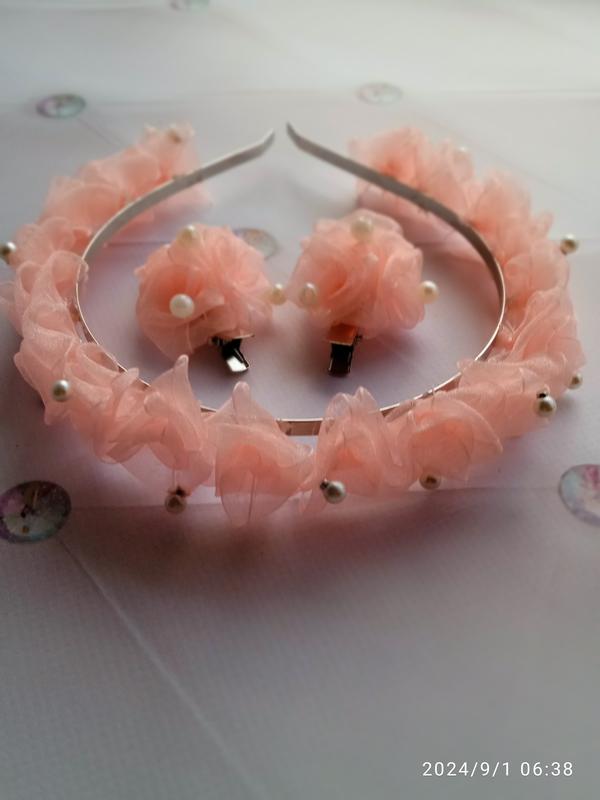 Розы нежного цвета пудра, органза! Ободок та 2 мини Заколки 150 грн