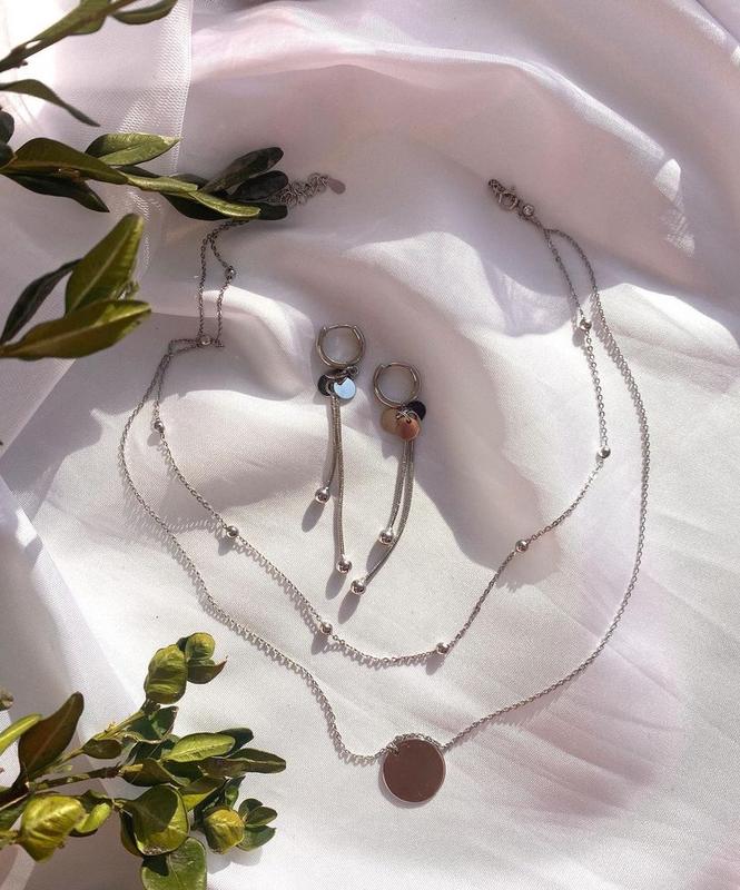 Набір «Ball» в стилі мінімалізм ✨✨✨ В комплекті подарункова коробочка. ✨Багатоярусний і ніжний ланцюжок з підвіскою Ball дуже красиво підкреслює шию✨ 💫Довгі сережки пензлики Ball - не залишать без уваги навіть дуже вибагливу кокетку. ✨Ланцюжок Ball ✦матеріал: біжутерний сплав з покриттям срібла 925 ✦ довжина 38+6 см. 🏷 250 UAH ✨Сережки Ball ✦матеріал: біжутерія + покриття срібло 925 🏷 300 UAH