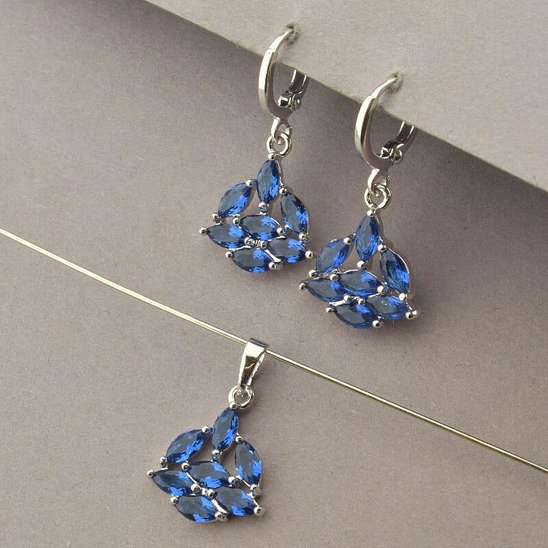 Артикул: 046161 Размер серьги: 14х15 мм. Бренд: XUPING Вес: 9 г. Камень: Фианит(нат.) Качество: Не темнеет, не облазит Материал: Медицинский сплав Покрытие: родий Тип замочка: Кольцо Цвет: Синий Цвет3: Серебряный
