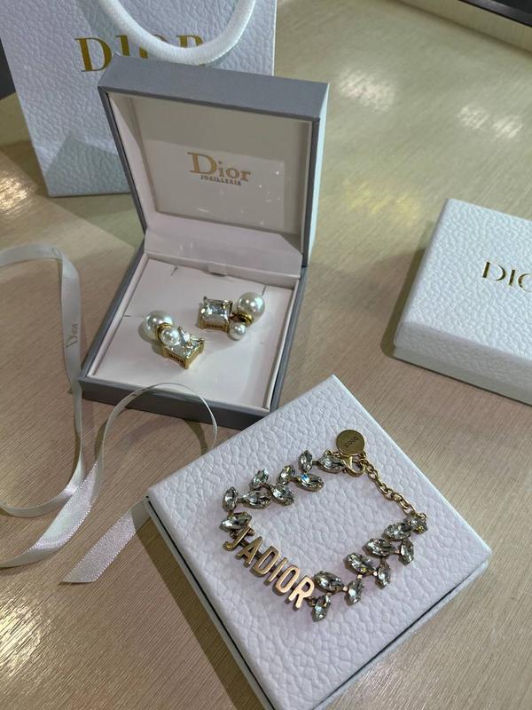 Брендовый набор серги и браслет с камнями