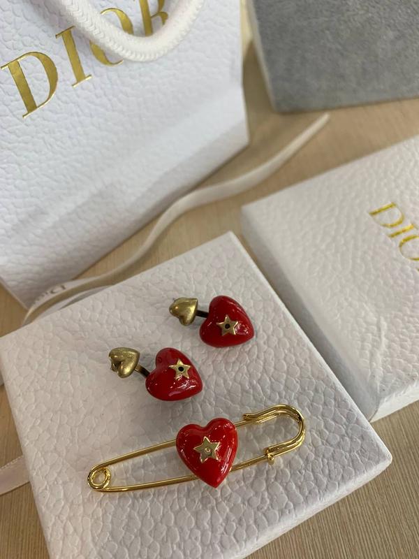 Брендовый набор серги и брошь с красным камнем позолота