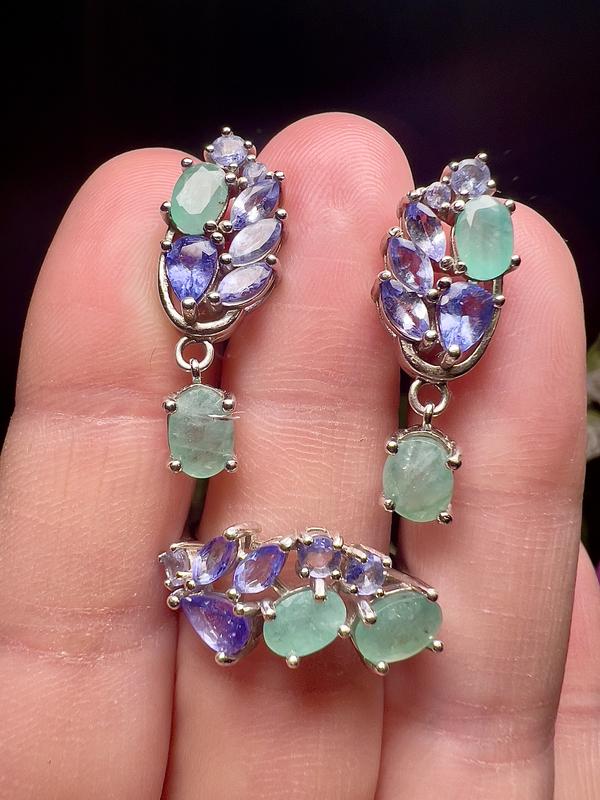 Срібний набір 925 проби з натуральними смарагдами та танзанітами