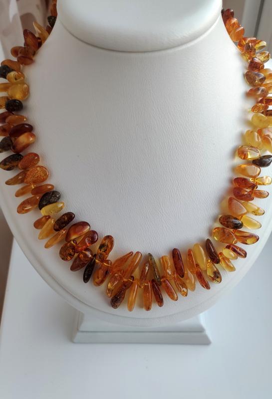 ### Намисто з бурштину MINOV 2274 довжина 53 см. Яскраві модні намиста з натурального бурштину медових і коньячних відтінків для енергійних і сучасних модниць, які чудово поєднують стиль і користь бурштинових аксесуарів. Ручна робота. Колір виробу може відрізнятися відтінком на Вашому моніторі. Так само відтінок залежить від освітлення падаючого на виріб. Характеристики. Довжина: 53 см; Розмір каменю: довжина 7-15, ширина 5-8 мм; Застібка: пластикова гвинтова; Вага 40 грам. Бурштин називають чарівною смолою стародавнього лісу. Вважається, що своїм теплим золотавим кольором він прояснює думки і допомагає здійснюватися мріям. У багатьох країнах бурштин довго залишався заморським дивом і тому був оточений ореолом таємничості. Цей мінерал - джерело творчих сил, натхнення та оптимізму. Він дарує власникові фізичні сили, бадьорість духу, приносить удачу і зберігає здоров'я. Лікувальні властивості. Янтар допомагає при головному та зубному болю, перепадах артеріального тиску, може вберегти від магнітної бурі і поліпшити зір. Він позитивно впливає на щитовидну залозу (за рахунок вмісту в ньому йоду), селезінку і серце. Крім йоду бурштин містить інші мікроелементи, корисні для організму людини, а також солі бурштинової кислоти, яка активізує обмінні процеси, стимулює травну систему, має протизапальну дію. ###