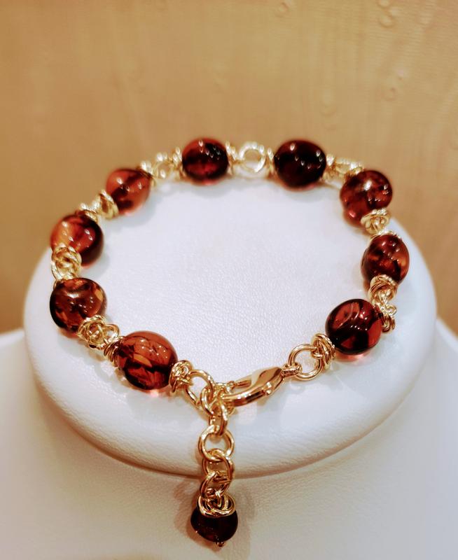 Браслет MINOV 2198 з натурального бурштину темна вишня. Бурштин називають чарівною смолою давнього лісу. Вважається, що своїм теплим золотистим кольором він прояснює думки та допомагає здійснюватися мріями. У багатьох країнах бурштин довго залишався заморським дивом і тому був оточений ореолом таємничості. Цей мінерал -- джерело творчих сил. натхнення й оптимізму. Розмір намистин 10х9 мм; Застежка: "Лобстер"; Фурнітура Milano Lux позолота 24К. Підходить на руку 17-18 см по колу. ПРЕДОПЛАТА 120 грн