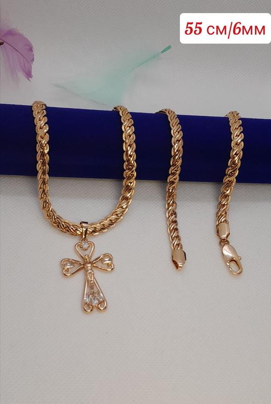 Хрестик на ланцюжку Xupin Метал - біжутерний сплав Покриття позолота 18К ланцюжок 55 см /6 мм Застібка - карабін Хрестик — 44 мм/24 мм камінь вставка - білі фіаніти Прикраси не тускніють при контакті з водою, гіппоалергенне покриття 18ти каратним золотом наноситься на прикраси гальванічним способом, що захищаеє їх від потускніння та псування виробів.