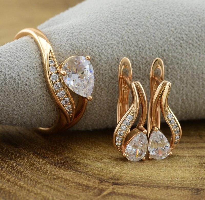 Набір каблучка та сережки ✔️розмір: Каблучка 21 Сережки 15×6 ✔️ позолота 18к ✔️ціна 230 грн