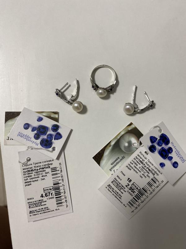 Набор из серебра 925 пробы с сапфирами и жемчужинами Трели сolья. Очень красиво смотрит, сияет. В состоянии нового. Надевался 1 раз. Все бирки сохранены