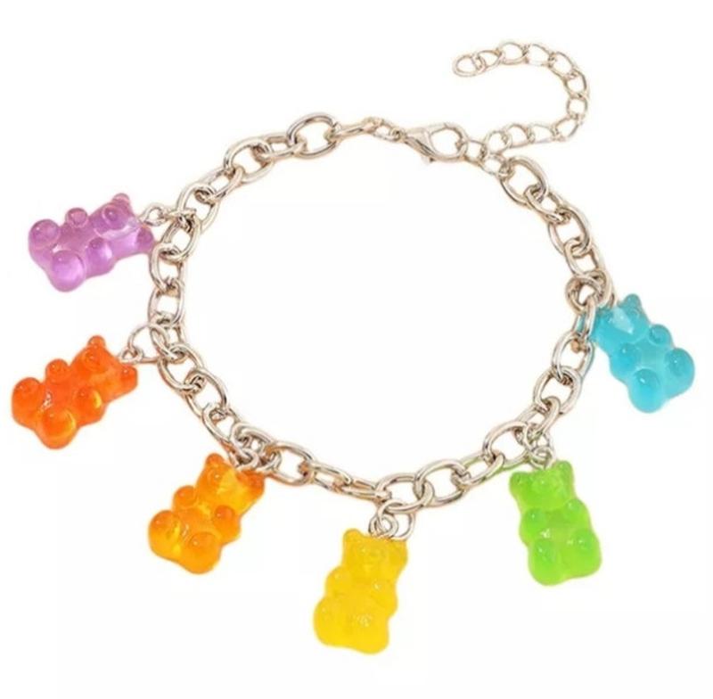 Браслет желейні ведмедики - довжина 25см, регулюється, смола, цинковий сплав