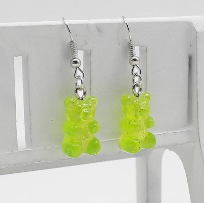 Дитячі сережки ведмедики. Колір: салатовий з блискітками. Розмір: 1,6*1см. Матеріал: смола. Всі наші товари Ви можете подивитися на нашому сайті: