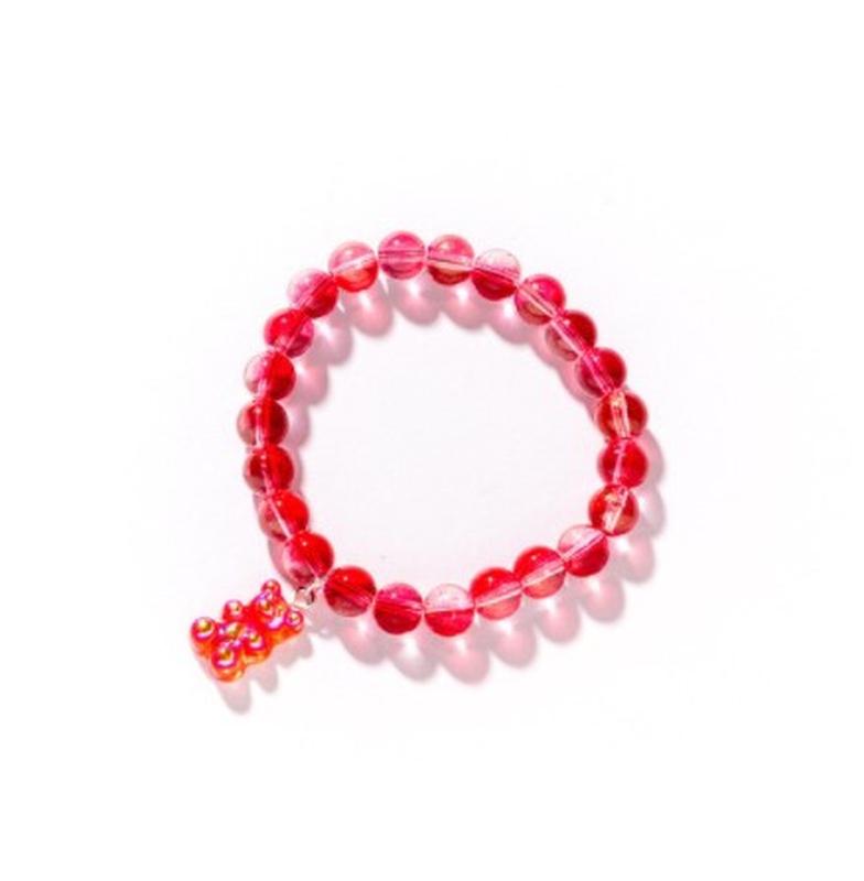 Браслет мармеладними ведмедиками і намистом, колір червоний, розмір універсальний на резин...