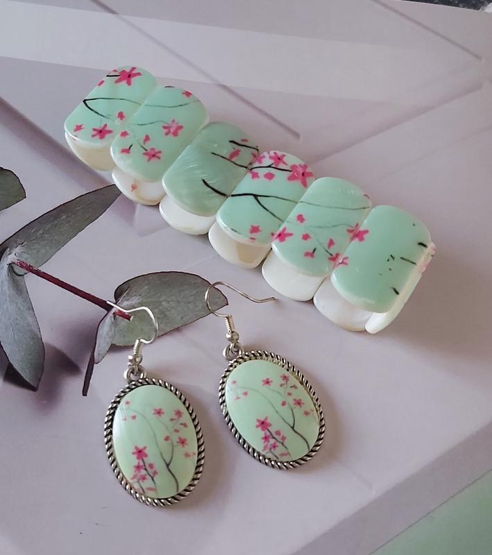 Браслет сакура сережки перламутр